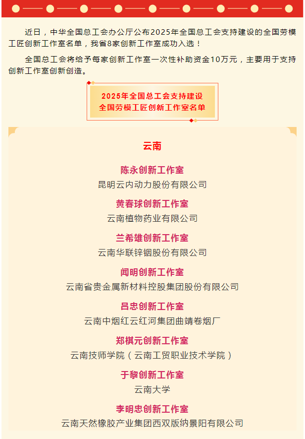 兰希雄创新工作室入选2025年全国总工会支持建设的全国劳模工匠创新工作室名单