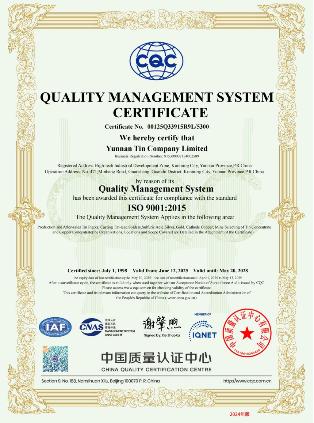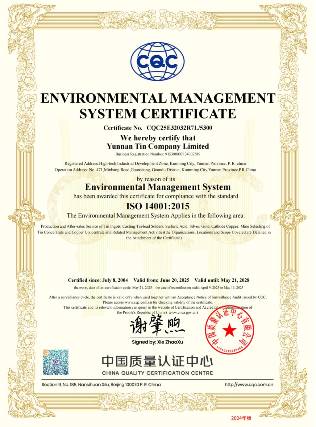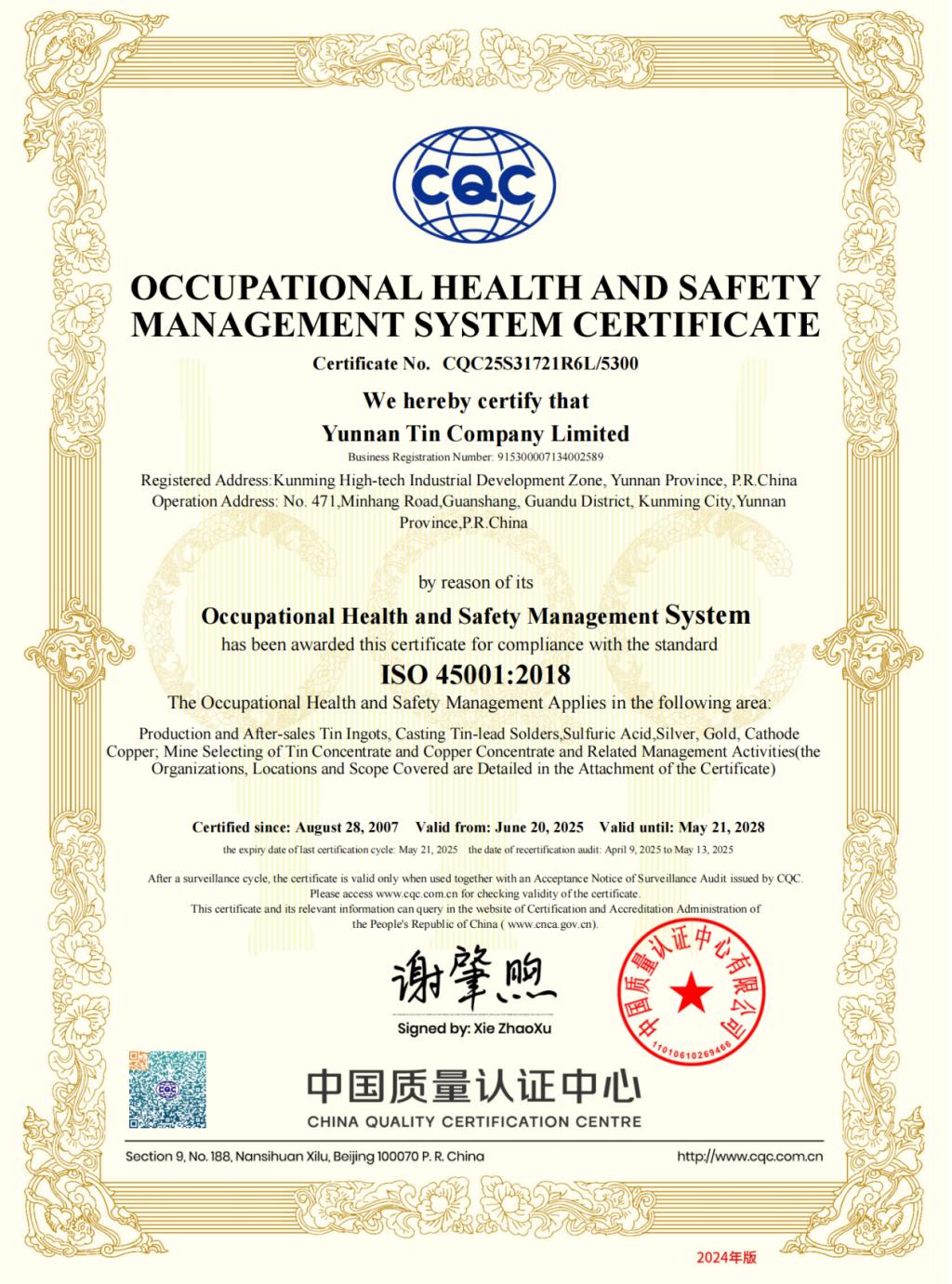 ©Copyright Yunnan tin Limited by Share Ltd All rights reserved.