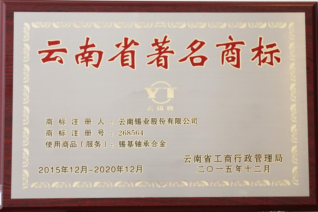 云锡牌锡基轴承合金获有色金属实物质量金杯奖