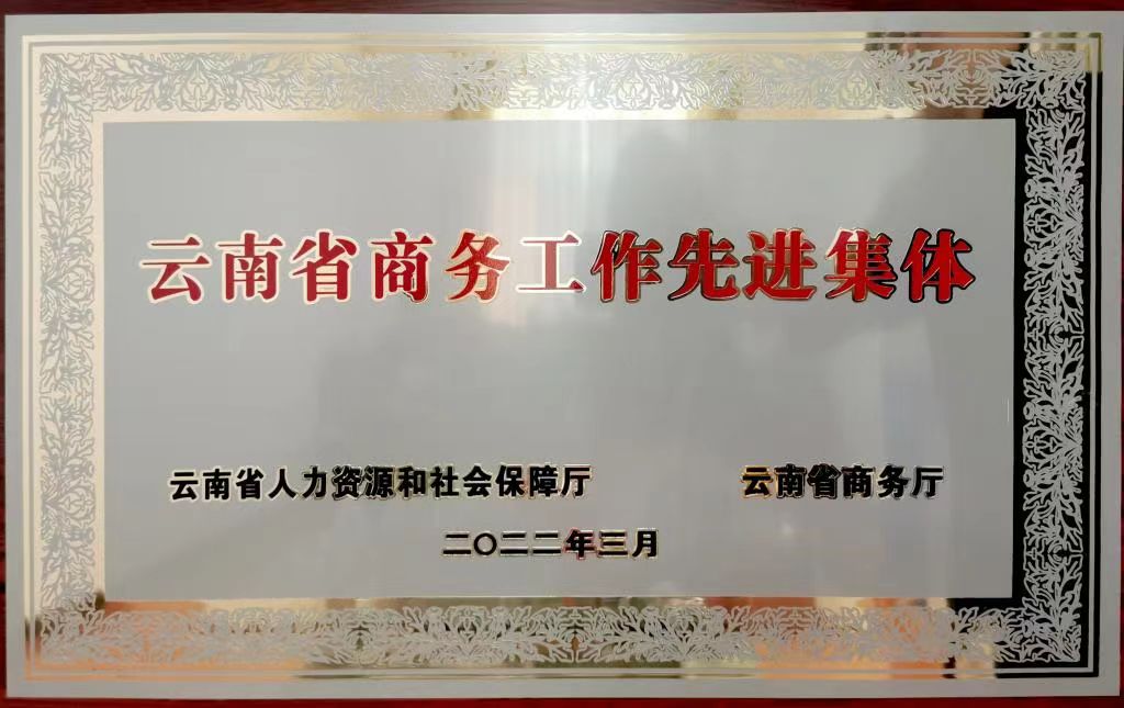 2022年,伟德国际victor1946荣获“云南省商务工作先进集体”荣誉称号