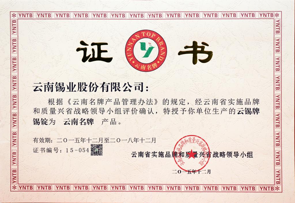 云锡牌锡锭、铸造锡铅爆料、铅锭、铋锭、铟锭为中国知名出口品牌