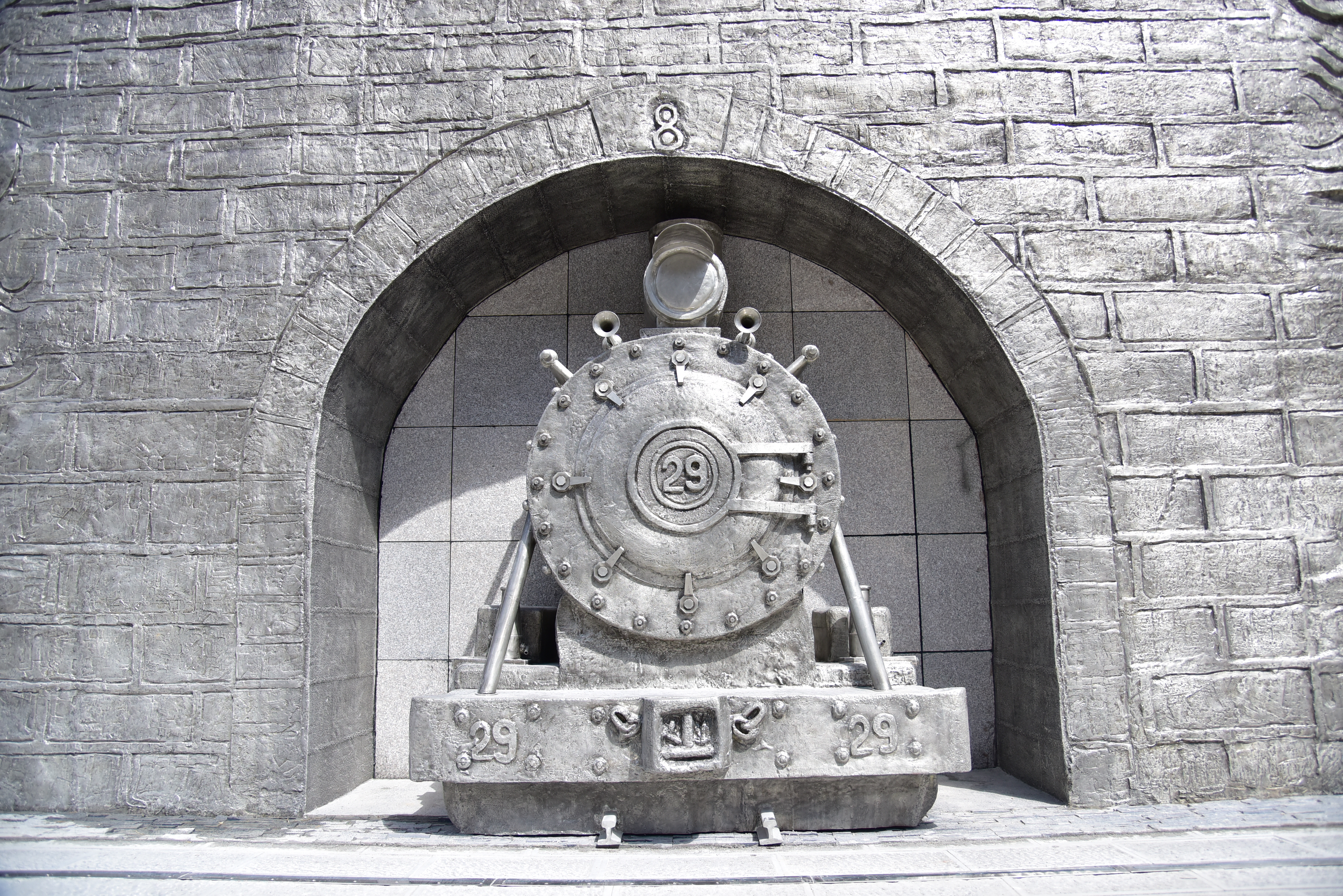 锡矿开采历史的见证者、旧时人背马驮的运矿方式、不同字体的“锡”字、捧着个旧金湖的双手、代表哈尼族的吉祥鸟、古老的个旧选厂钟楼、滇越铁路、 “云锡三杰”、以熊秉信和丁文江为代表的地质专家,29号小火车、8号矿洞……在以英文字母“Y”为中轴的左侧主题浮雕墙上,每一个元素就是一个故事,它们串连在一起仿佛在诉说着“锡映千秋”的历史辉煌。
