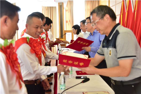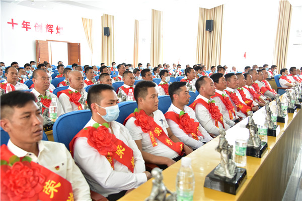 杨奕敏宣读控股公司《关于表彰荣誉矿工的决定》。