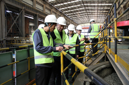 在选矿车间,大屯锡矿副经理莫峰热情接待了到访的来宾。经过入厂安全培训之后,来宾们进入了秩序井然的生产车间,选矿车间的陪同人员介绍了车间的产能、工艺流程、科技创新等方面情况,在听取介绍和实地参观后来宾们对于规范整洁的作业环境给予了充分肯定,而大型化、自动化设备的广泛运用也给他们留下了深刻的印象。