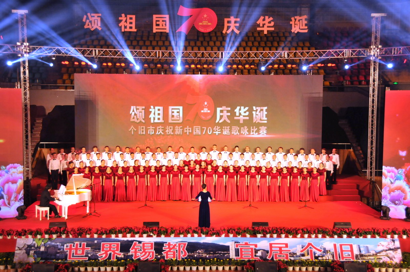 9月24日,“颂祖国 庆华诞”个旧市庆祝新中国70华诞歌咏比赛在州体育馆精彩上演,由冶炼分公司员工组成的云锡集团(控股)公司表演队与来自州市的12支参赛队激情放歌,以悠扬的音乐展现新时代、新风貌,用悦耳的歌声诠释建国70年来祖国日新月异的新变化、新成就。控股公司党委常委、工会主席、伟德国际victor1946董事长汤发出席歌咏比赛现场,并为获奖选手颁奖。