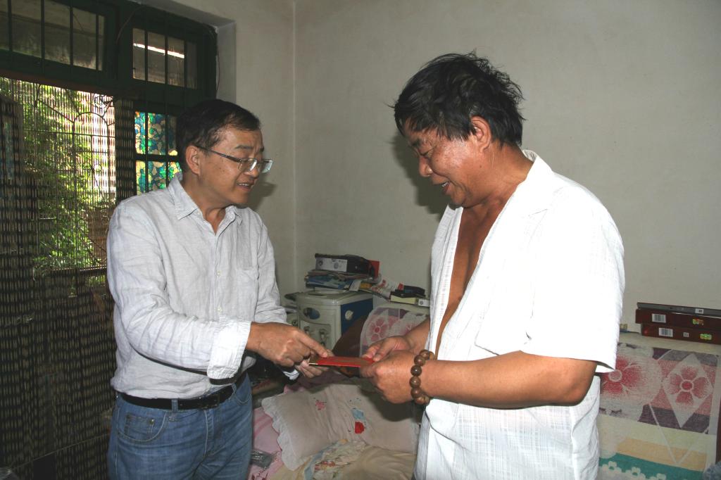 伟德国际victor1946副总经理童祥走访慰问老厂分公司困难职工周金伟、董福信、罗国伟。(李拉发/摄)