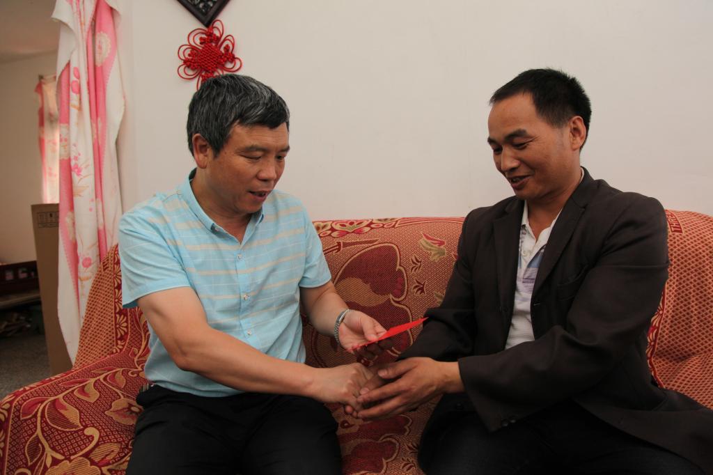 伟德国际victor1946党委副书记、副董事长赵锦洪走访慰问老厂分公司困难职工普志良、王丽华、吴绍屏。(李拉发/摄)