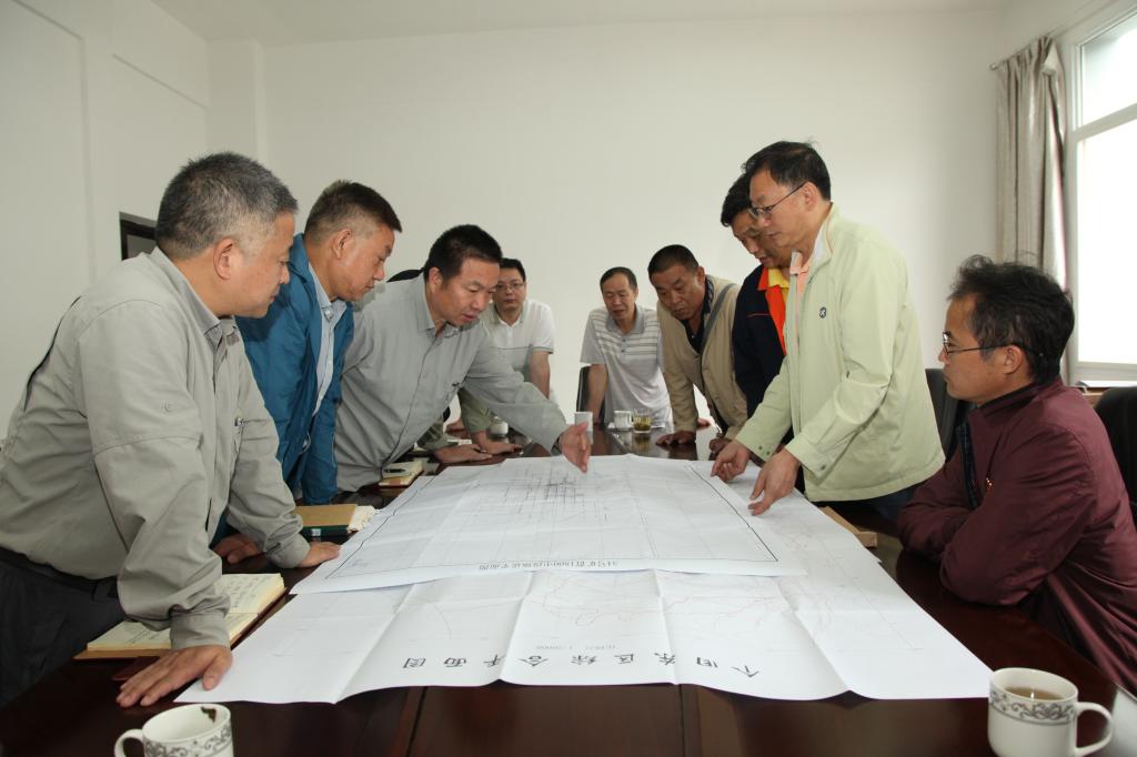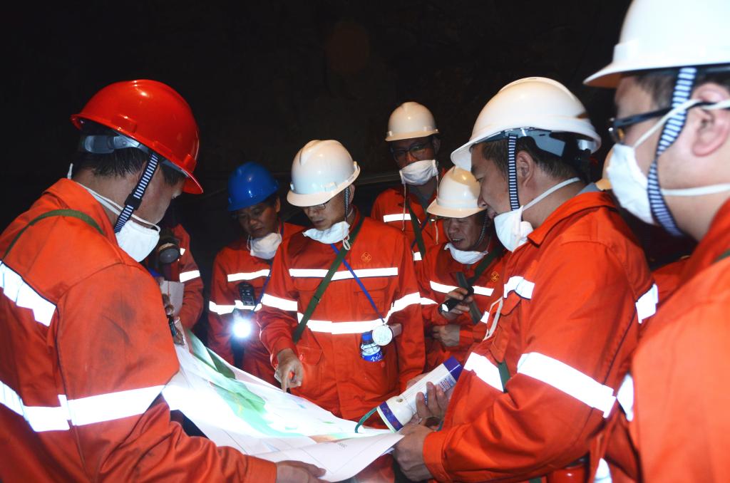 6月29日,考察组一行深入高峰山生产现场查看了矽卡岩硫化矿接触带矿、岩情况。在高峰山排班室,考察组在结合工程图了解高峰山矿体资源分布、采场布局情况后,深入采场现场取样,并仔细查看、分析了矿石类别、岩石性质等情况。随后,考察组又到大陡山露天采场现场进行实地考察。