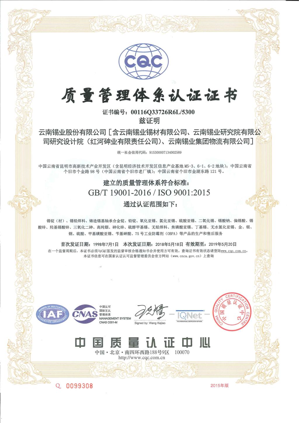 2017年,伟德国际victor1946根据国家新发布的质量管理体系(GB/T 19001-2016/ISO 9001:2015)、环境管理体系(GB/T 24001-2016/ISO 14001:2015)标准要求,特邀中国质量认证中心CQC云南评审中心专家到公司,对体系覆盖单位的内审员、管理人员进行质量、环境管理体系新版标准及职业健康安全管理体系标准宣贯培训。随后,公司组织有关部门、单位根据新版标准要求识别公司的主要过程,建立高效简练的管理流程,针对可能存在的风险、机遇及后果,制定相应的控制措施以及量化的过程控制绩效指标,在中心老师的指导下,修改旧版文件形成新版管理体系文件发布实施。经公司内部试运行、内部审核及管理评审,2018年4月初通过中国质量认证中心CQC云南评审中心的换版认证现场审核及监督审核。