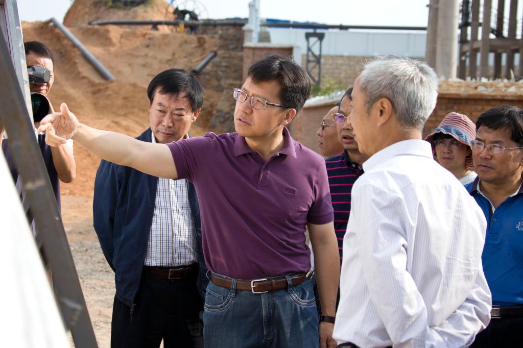 在大屯锡矿花坟尾矿库二次浓缩站,李刚向姚国华一行介绍了花坟尾矿库二次浓缩站的分布和各种设备设施功能等情况。目前,北部工业园区建设已经进入收官阶段,三道水民营选矿厂通电、通水、通路和场地平整等工程基本完成,重点项目花坟尾矿库已进入试车前的准备工作。