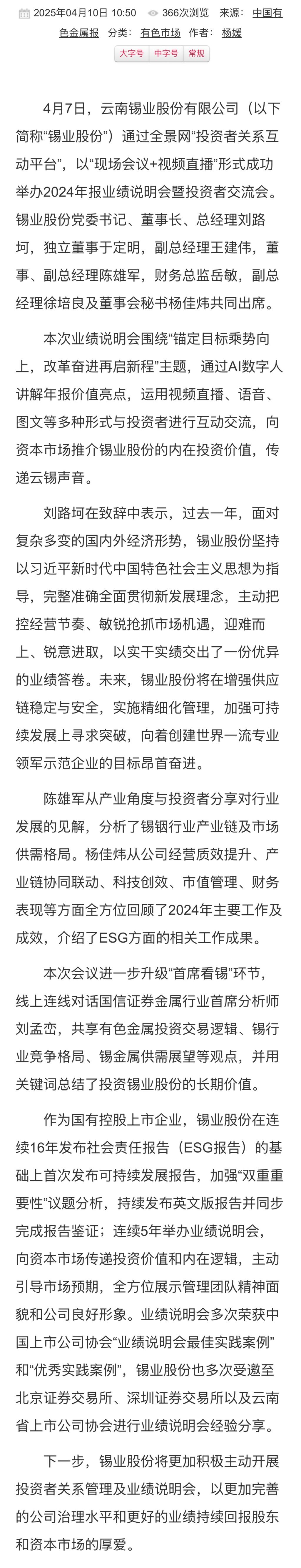 中国有色金属报:伟德国际victor1946成功举办2024年报业绩说明会