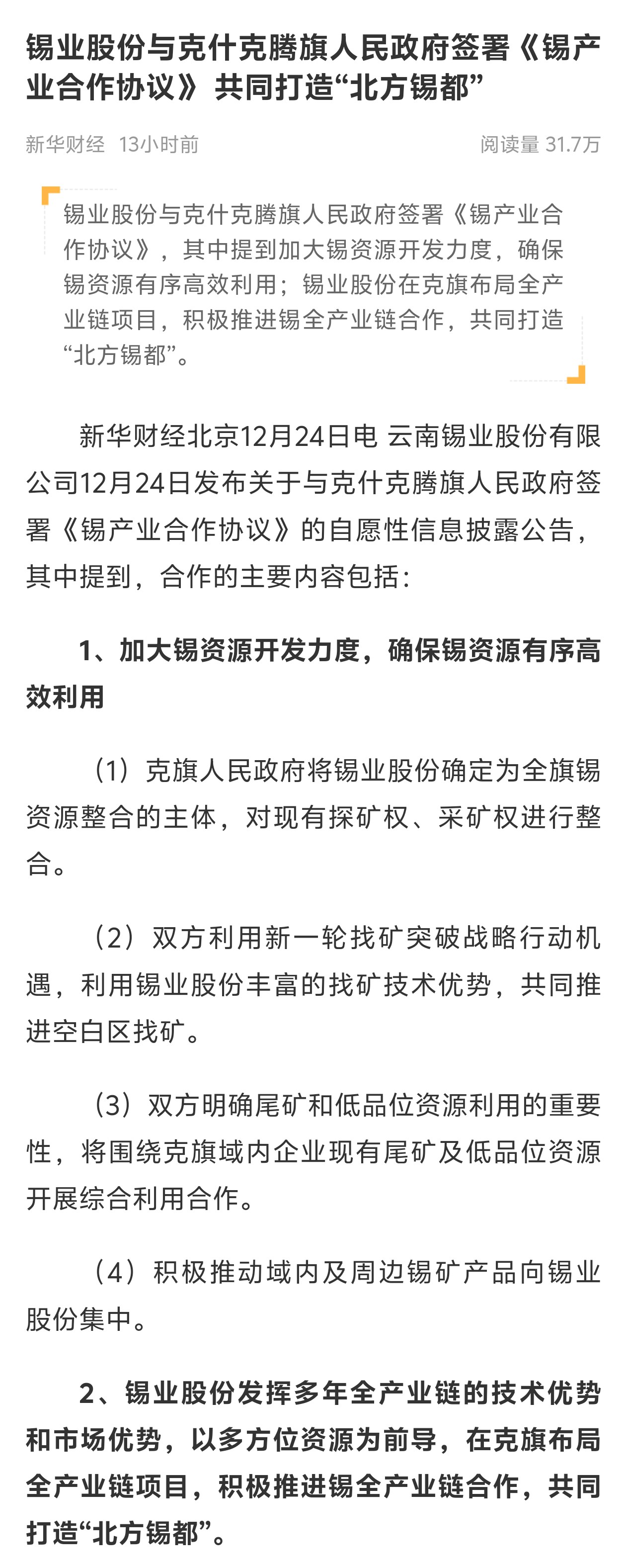 新华财经:伟德国际victor1946与克什克腾旗人民政府签署《锡产业合作协议》 共同打造“北方锡都”