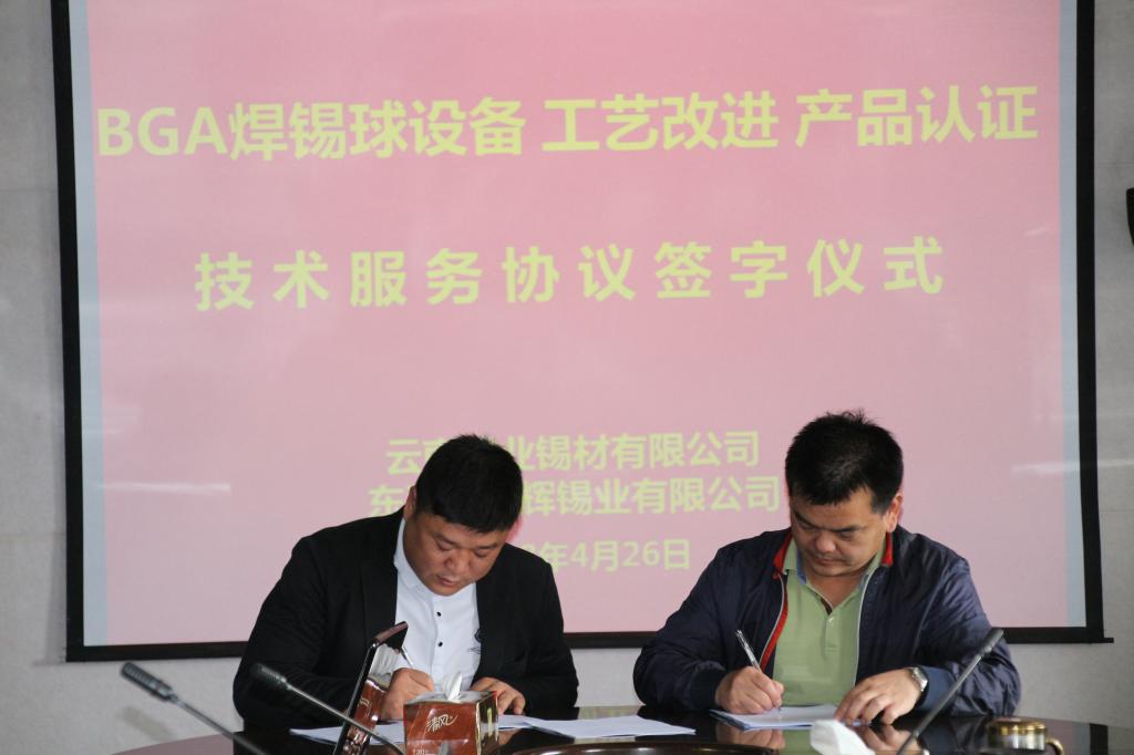 近日,为进一步提高锡材公司BGA焊锡球生产技术和产品质量水平,锡材公司与东莞市联辉锡业有限公司签署技术合作协议。