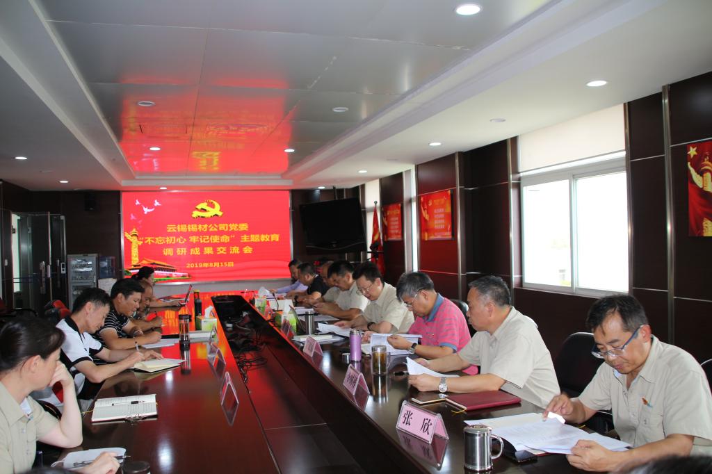 8月15日下午,锡材公司党委召开“不忘初心、牢记使命”主题教育调研成果交流会议。控股公司党委主题教育第六指导组副组长董建勇一行三人到会指导,锡材公司党委书记、董事长王鹏飞主持会议。