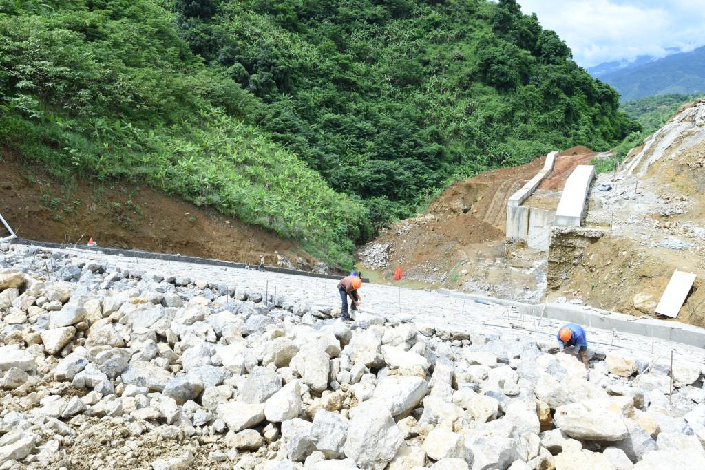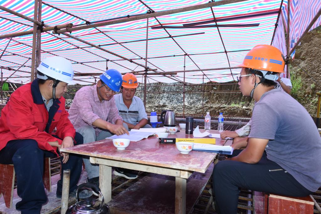 他们掐着时间和雨天赛跑,加快“活要干在下雨前”的步伐。在建设库内排洪隧洞时,由于电力不足影响施工,项目部的兄弟们自发去帮助架接电缆,在倾盆爆雨中一人打伞,一人挖坑,时不时还摔上一跤,等到电缆接好时大家都成了泥人。
