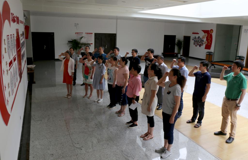 7月11日,伟德国际victor1946机关第五党支部在锡博物馆四楼组织全体党员以多种形式纪念中国共产党建党97周年,推动党支部规范化建设达标创建和“四讲四有”党员队伍建设,增强党员干部做好机关服务工作、立足岗位担当作为、敬业奉献多作贡献的政治责任感。