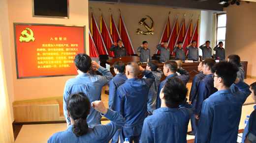 与会的全体正式党员和预备党员面对党旗宣誓,庄严的誓词激励着每一名党员牢记使命、奋勇前行。