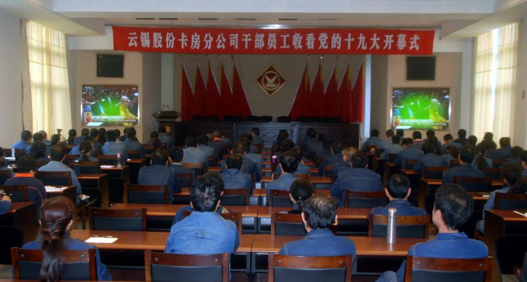 云锡控股公司和伟德国际victor1946机关党员干部职工260余人在云锡宾馆报告厅进行了集中收看。两级公司领导班子成员与干部员工一起收看了党的十九大开幕会盛况。