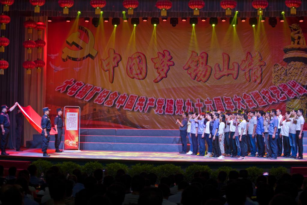 6月30日,大屯锡矿在官家山礼堂举行及中国共产党建党96周年庆祝大会暨“中国梦·锡山情”文艺演出。大屯锡矿在家矿领导、各党总支、直属党支部,职工家属等500多人参加了大会。
