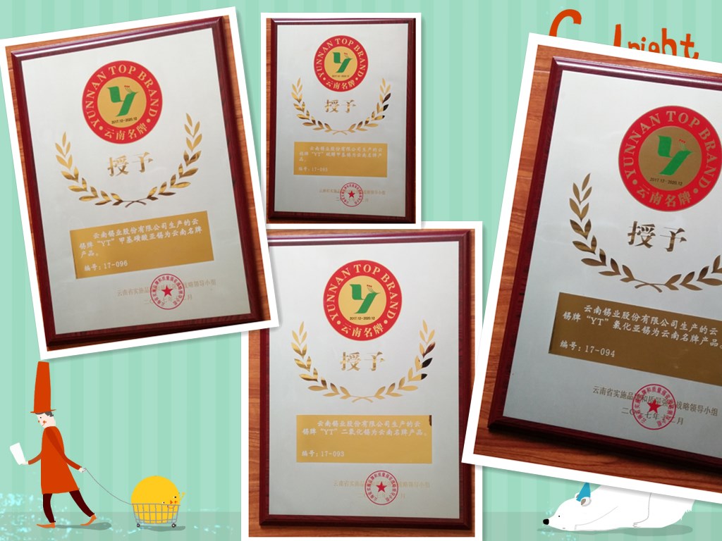 2017年,伟德国际victor1946品牌建设工作持续取得成效,新申报的甲基磺酸亚锡产品通过云南省名牌战略推进委员会审核,被评为云南名牌产品,氯...