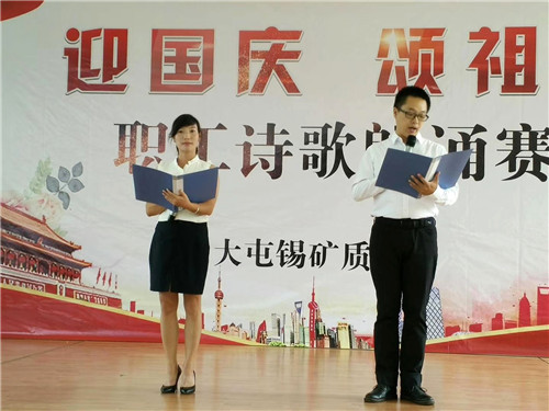 9月19日,大屯锡矿质监部精心策划开展“庆国庆、颂祖国”职工诗歌朗诵比赛如期举行。