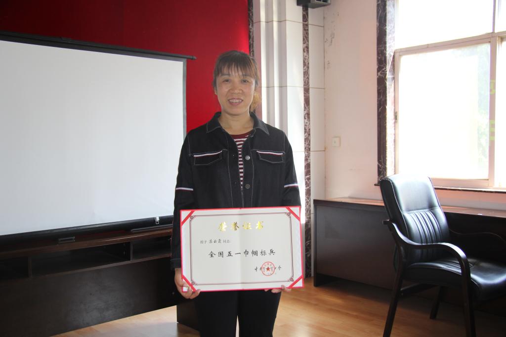 大屯锡矿苏云霞荣获全国五一巾帼标兵荣誉称号