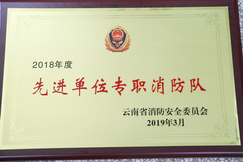华联锌铟公司消防队荣获“2018年度先进单位专职消防队”荣誉称号